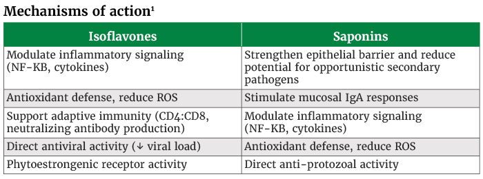 2Smith et al. 2020. J. Anim. Sci. Dietary soy isoflavones reduce pathogen-related mortality in growing pigs under porcine reproductive and respiratory syndrome viral challenge.